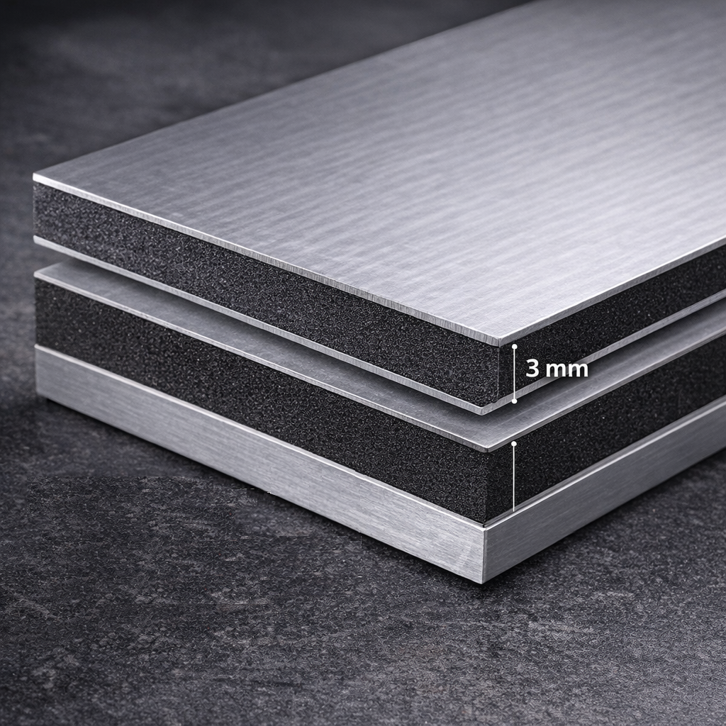 Алюминиевый композит 3 мм - это материал, состоящий из двух алюминиевых листов с сердцевиной из полиэтиленового или минерального слоя. Этот материал сочетает легкость и прочность, что делает его отличным выбором для стенок защитных кофров.