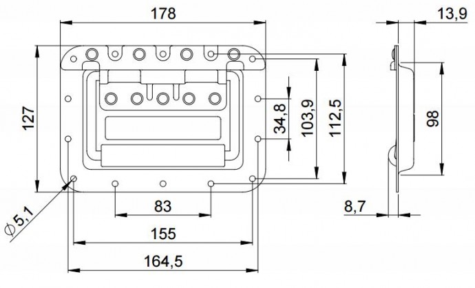 Adam Hall 34085 - это откидная обрезиненная ручка на плате глубиной 14 мм для вашего кейса или кофра . Она выполнена из оцинкованной стали с порошковым прокрытием, что обеспечивает прочность и долговечность изделия. Ручка легко устанавливается благодаря своему размеру. Вес ручки составляет всего 0,581 кг. Длина монтажного отверстия под клепки составляет 5,1 мм. В упаковке 40 шт.