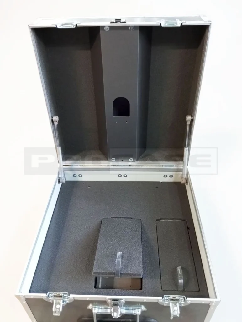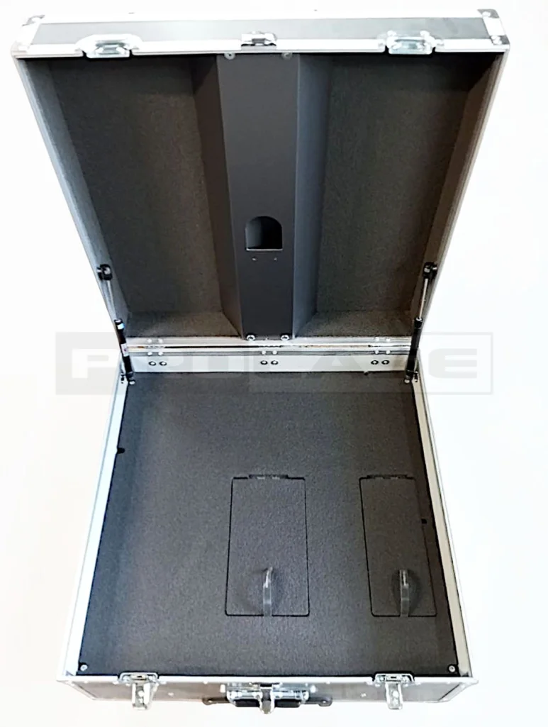 Кейс (защита) для спецэффектов– стенки этого кейса изготавливаются из прочной ламинированной фанеры толщиной 6,5 и 9 мм. (в зависимости от размеров или условий дальнейшего использования) из России и Беларуси. Этот кейс может быть как компактным, так и содержать дополнительные отделы по вашему желанию или техническому заданию, а также иметь усиленную защиту.