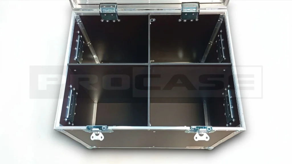 Кейс (защита) для спецэффектов – стенки этого кейса изготавливаются из прочной ламинированной фанеры толщиной 6,5 и 9 мм или инновационного материала пластокорп. Этот кейс может быть изготовлен по вашему индивидуальному запросу и содержать дополнительные отделы по, а также иметь усиленную защиту.