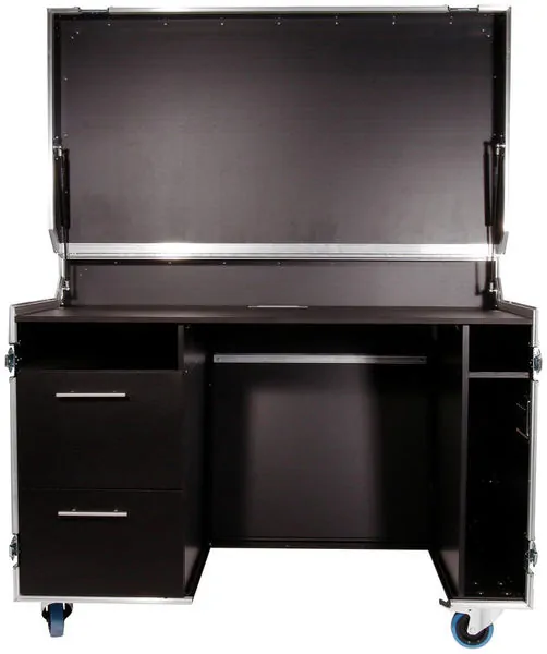 Кейс (кофр) для Workstation Case это удобное рабочее место в разобранном виде и имеющее компактные размеры в собранном, которое легко транспортировать. Как правило, крышка кейса оснащается съемной или откидной ножкой и служит приставным столом. Возможно оснащение таких мобильных рабочих мест: ложементами для оборудования и иных предметов, выдвижными ящиками, в том числе и с запорным механизмом, полками, рэковыми направляющими для крепления приборов любой высоты и глубины.
